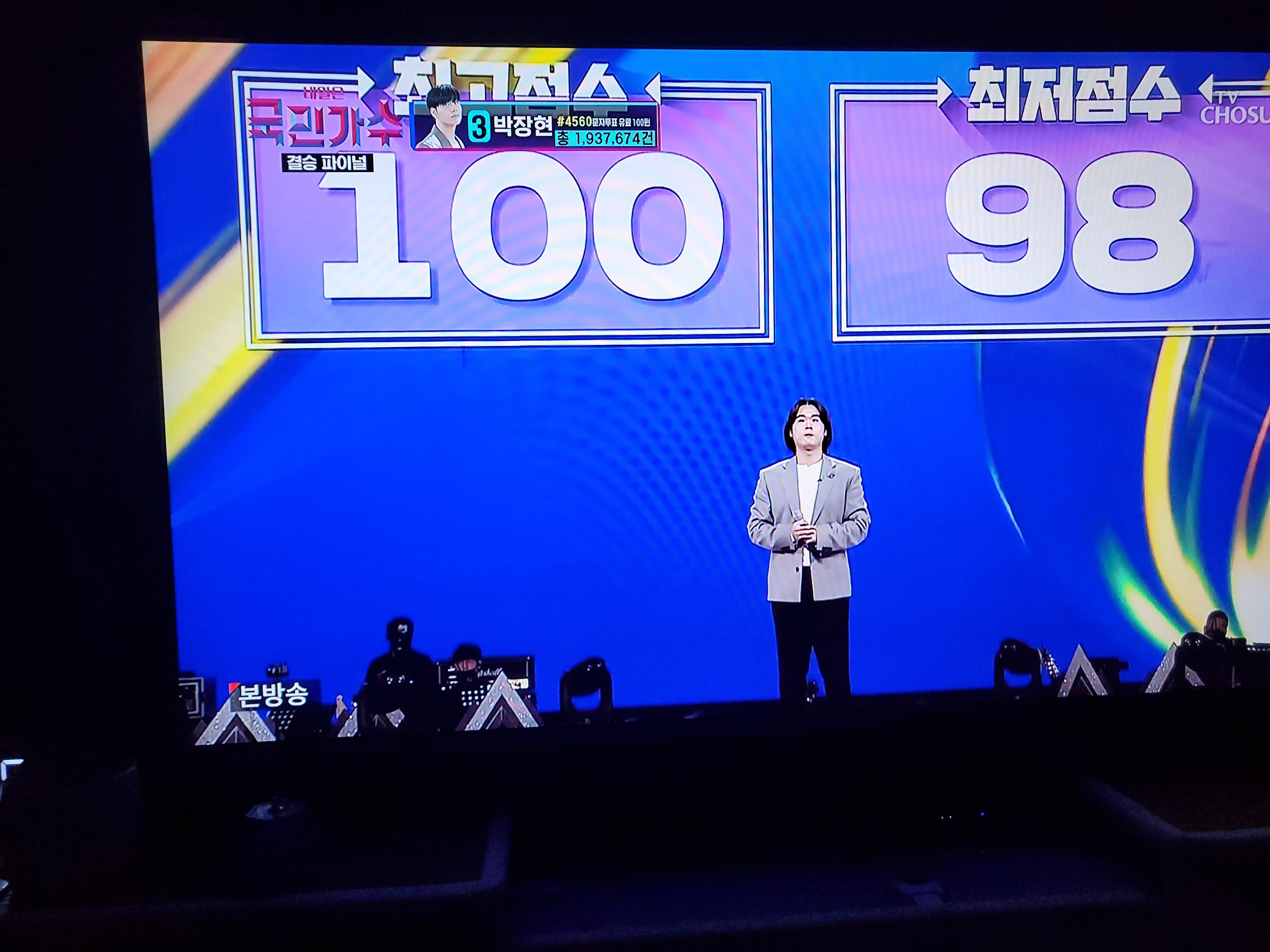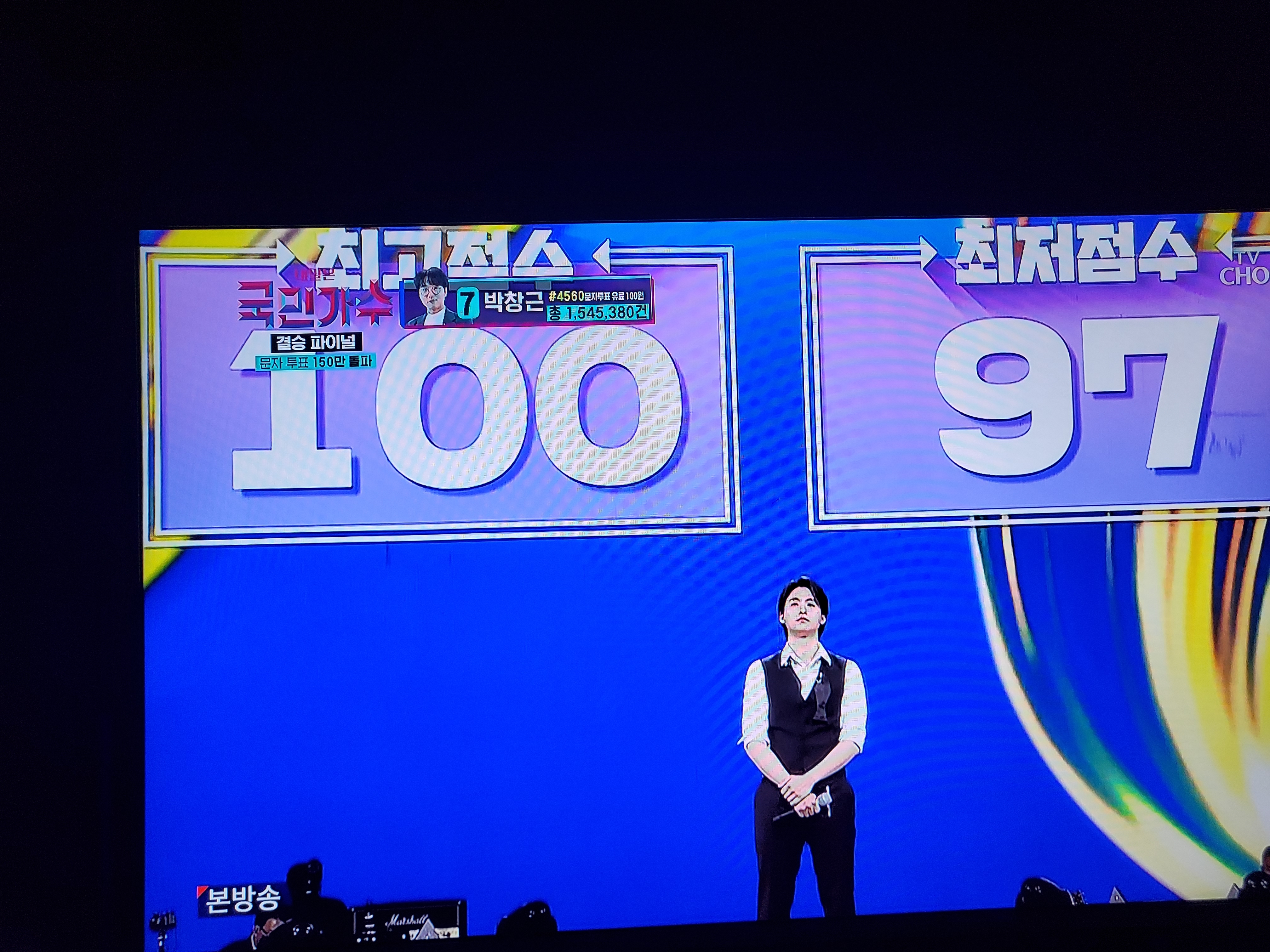 먼저는 심사원들의 평가 점수를 확인해보겠습니다. 일단 김동현이 거의 만점에 가까운 점수를 그리고 고은성 및 손직욱이 가장 낮은 점수를 받으셨습니다. 그래도 이번 마지막 공연을 보면서 다 대단하다라는 것을 느겼습니다.