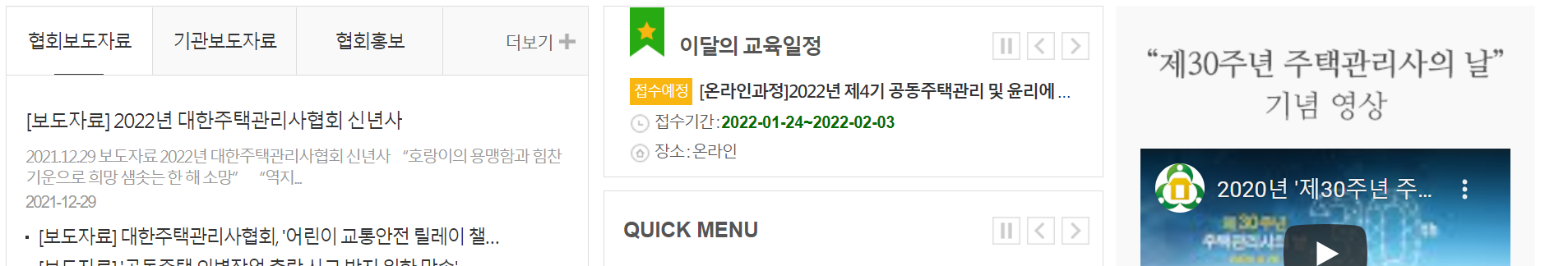 안녕하세요. 주택관리사협회 홈페이지 같은 경우는 정말 많은 정보들을 보고 알수가 있습니다. 일단 협회 소식 뉴스 소식 그리고 회원들의 각종 정보들 그리고 구인 및 입찰 정보등도 다 보실수가 있어요. 특히나 교육일정등도 있구요. 추가적으로 굉장히 저는 주택에 관려노딘일이라면 무조건 가서 여러가지를 배울수 있다고 생각이 듭니다.