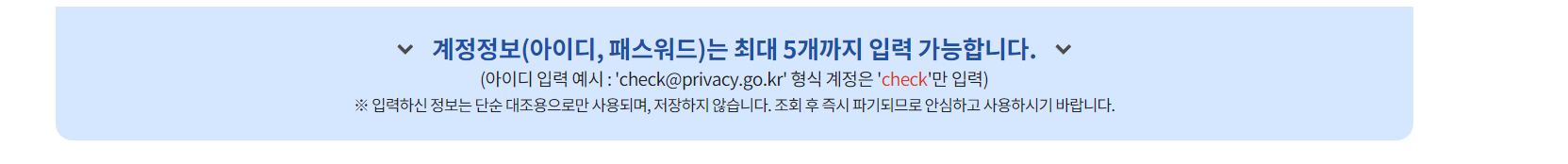 자신이 이용했던 5가지 계정정보를 통해서 입력하고 유출되었는지 확인이 가능합니다.